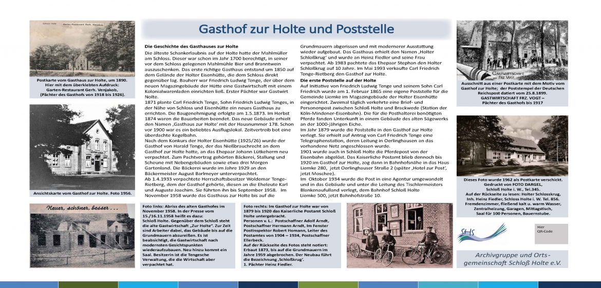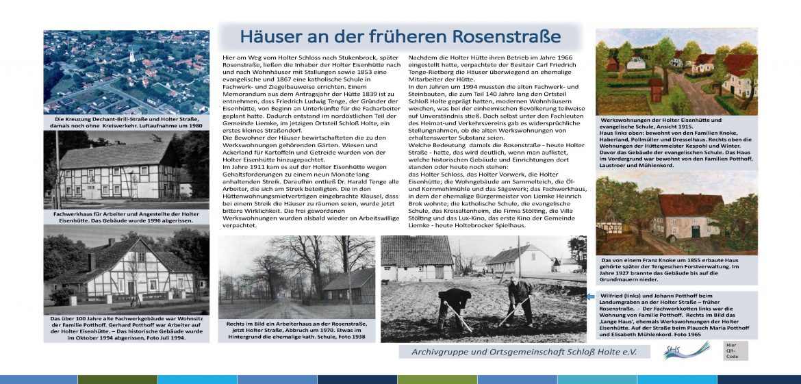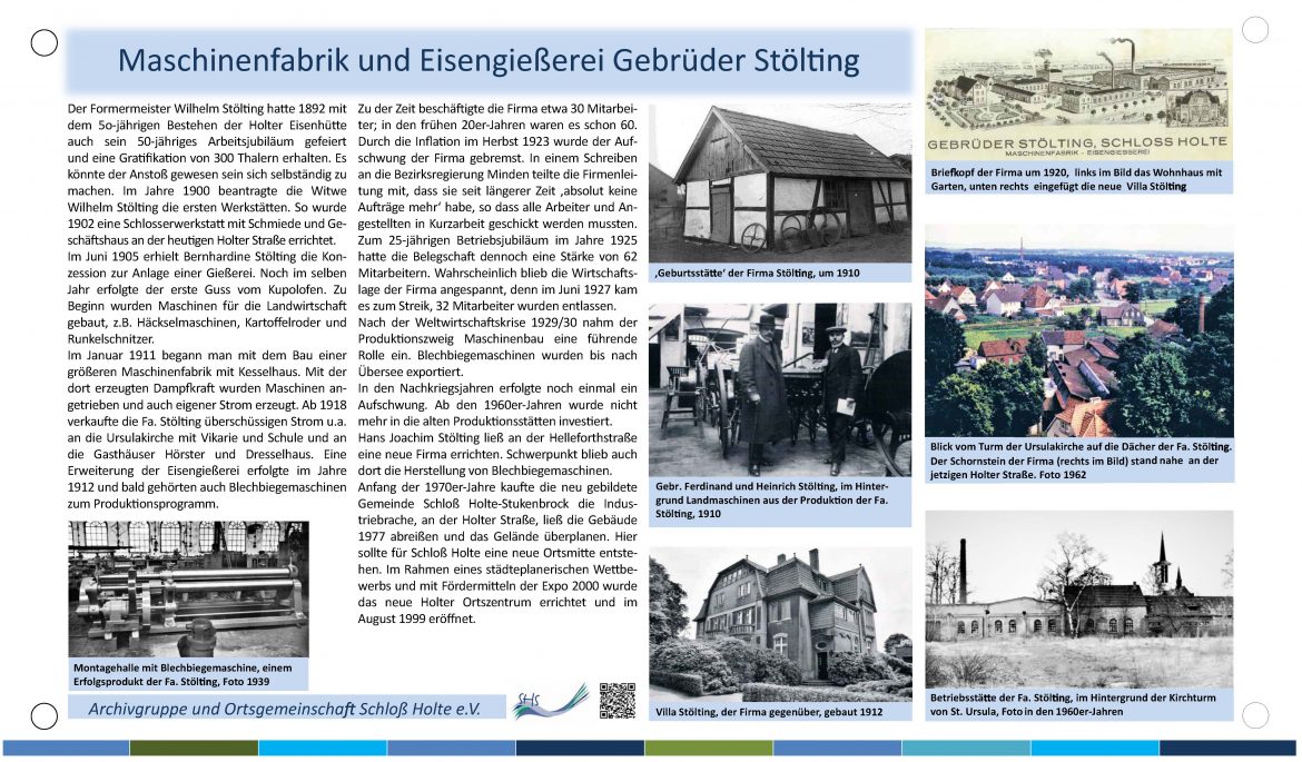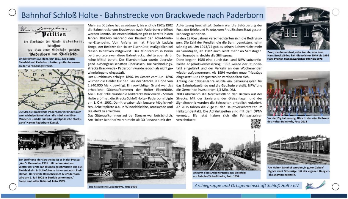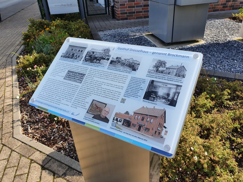 Die Projektidee stammt aus der Archivgruppe des Fördervereins Industriemuseum Schloss Holte-Stukenbrock e.V., die gemeinsam mit der Ortsgemeinschaft Schloss Holte e.V. diese historischen Info-Stelen umgesetzt hat. Insgesamt wurden 14 solcher Stelen im Ortsteil Schloss Holte aufgestellt – ausgestattet mit historischen Fotos, Texten und Dokumenten zur lokalen Geschichte. Die Umsetzung umfasste viele einzelne Schritte, bei denen die Ortsgemeinschaft eine zentrale Rolle spielte: