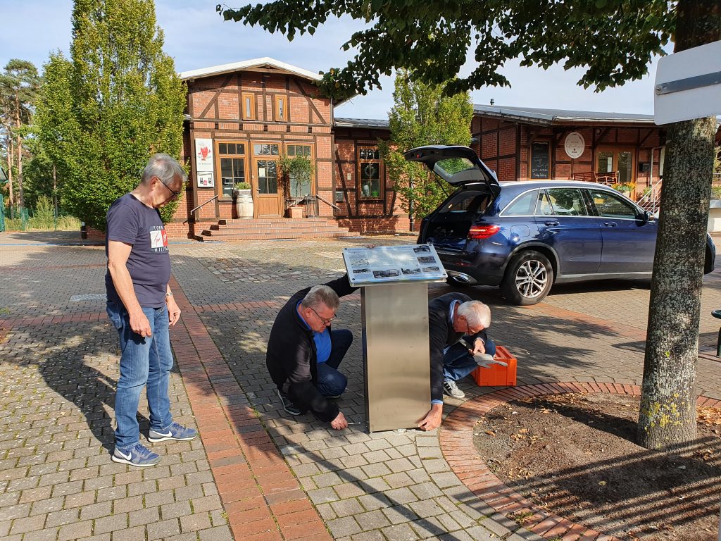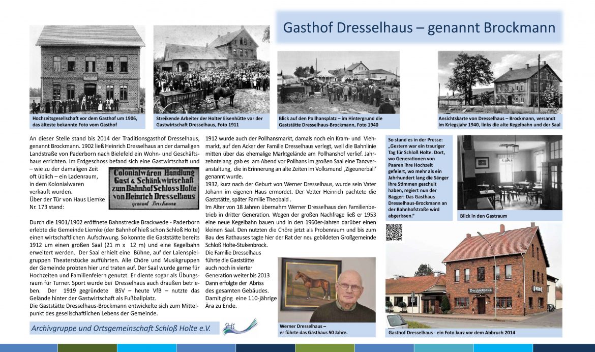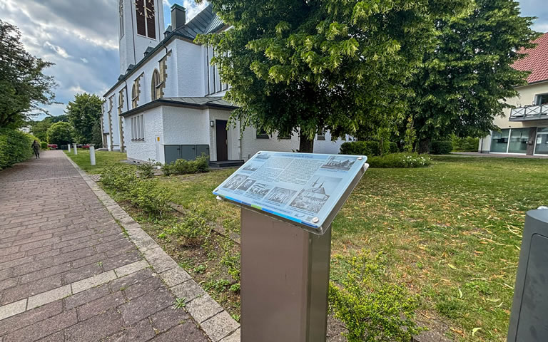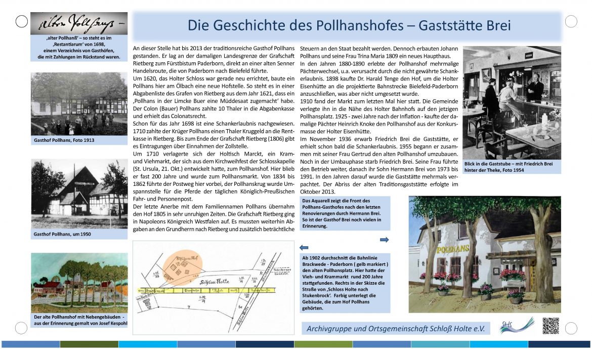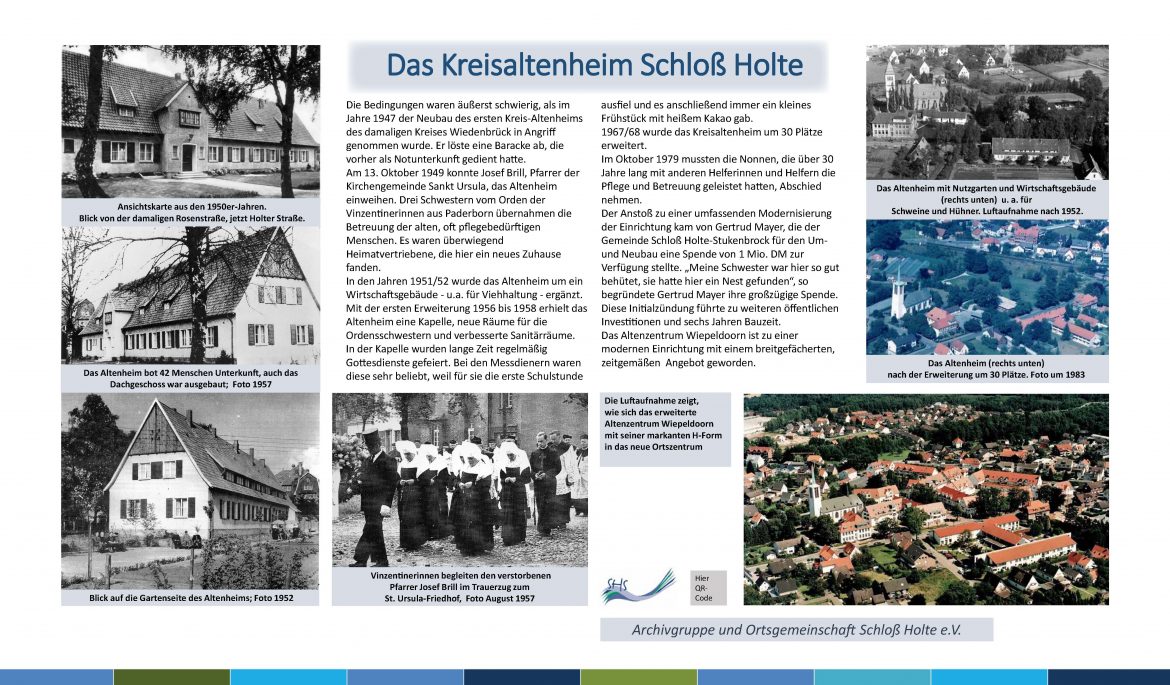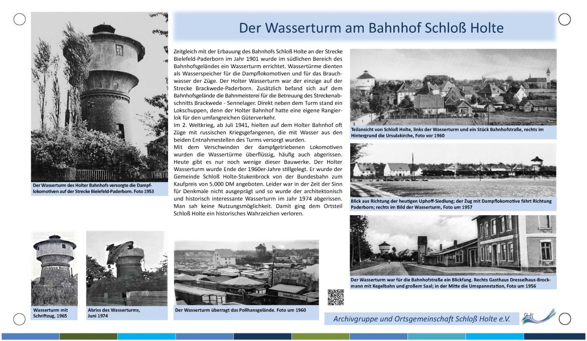 Die Projektidee stammt aus der Archivgruppe des Fördervereins Industriemuseum Schloss Holte-Stukenbrock e.V., die gemeinsam mit der Ortsgemeinschaft Schloss Holte e.V. diese historischen Info-Stelen umgesetzt hat. Insgesamt wurden 14 solcher Stelen im Ortsteil Schloss Holte aufgestellt – ausgestattet mit historischen Fotos, Texten und Dokumenten zur lokalen Geschichte. Die Umsetzung umfasste viele einzelne Schritte, bei denen die Ortsgemeinschaft eine zentrale Rolle spielte: