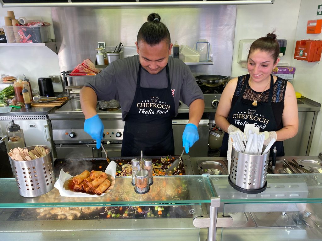 Für kulinarische Vielfalt sorgten gleich mehrere Anbieter, die mit einem abwechslungsreichen Speisenangebot überzeugten: Der Grillstand von Sander, die Holter Curry Queen und ein weiterer Grillstand der Firma Laustroer servierten Deftiges vom Rost – von Bratwurst bis Steaks war alles dabei. Für die süße Abkühlung zwischendurch sorgte die Eisdiele LaLuna mit ihrem beliebten Eisangebot. Neu dabei war in diesem Jahr Thalia Food, die mit asiatischen und orientalischen Spezialitäten frischen Wind in die kulinarische Auswahl brachten – ein echter Genuss für alle, die gerne etwas Neues probieren.