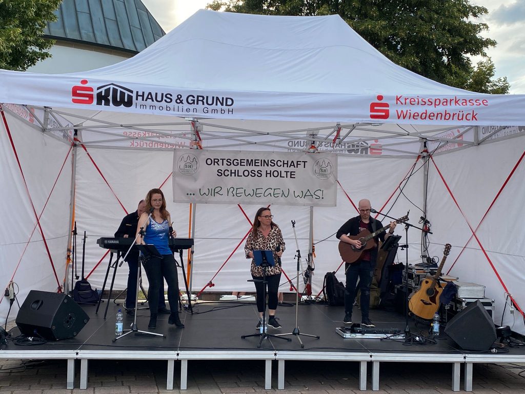 Die Ortsgemeinschaft Schloß Holte e. V. bedankt sich herzlich bei allen Standbetreiberinnen und -betreibern, Helferinnen und Helfern sowie bei Frank Dresselhaus für die reibungslose Technik und den Partyhüpfern für das tolle Kinderangebot. Nicht zuletzt danken wir allen Gästen für diesen rundum gelungenen Abend. Wir freuen uns schon auf den nächsten Abendmarkt – bis dahin bleibt uns die Erinnerung an einen wunderschönen Sommerabend mitten in Holte.